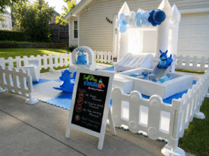 If you have booked an outdoor event, it’s strongly recommended to have an indoor alternative. In the event of rain, we require a tent with four walls for outdoor setup, or we can use an alternate indoor location. We will not set up outdoors if rain or strong winds are forecasted, as this could make the equipment slippery and unsafe. Additionally, water can cause serious damage to the equipment. If the weather turns adverse on the day of the event and no indoor alternative has been arranged, we will offer a credit for a future party.